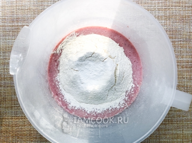 Просейте муку и разрыхлитель. Перемешайте до однородной массы, чтобы не было комочков.