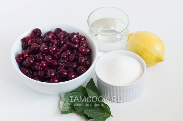 В чашу блендера переложите вишню, взбейте в пюре. Добавьте базиликовый сироп и взбейте еще раз. Листочки базилика не используются. Добавьте сок лимона.