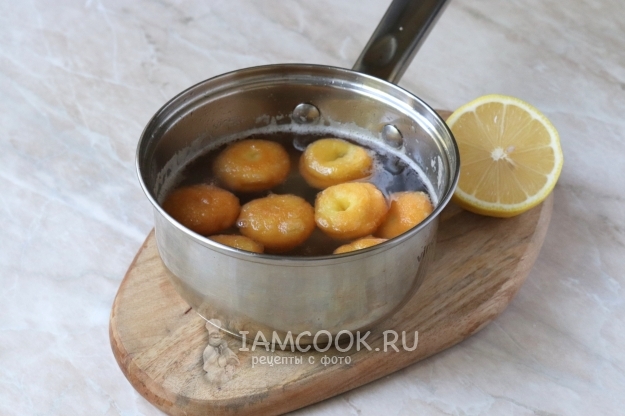 После чего с помощью шумовки переложим их в остывший сироп. Аккуратно перемешаем и выложим на презентационную тарелку.