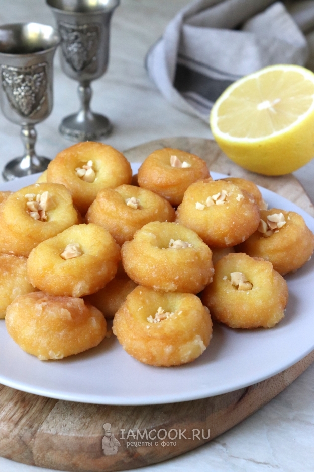 Турецкие пончики готовы к подаче. Единственным их дополнением могут стать измельчённые орехи, которыми заполняются углубления, и чашечка ароматного чая.