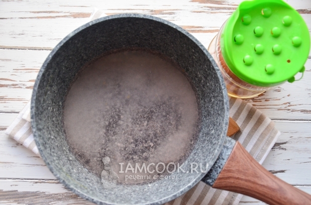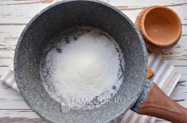 В сотейник пересыпьте нужное количество сахара. Также можно добавить пару щепоток молотой корицы или ванильного сахара.