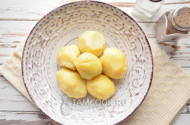 Картофель помойте и сварите "в мундире", затем остудите и почистите.
