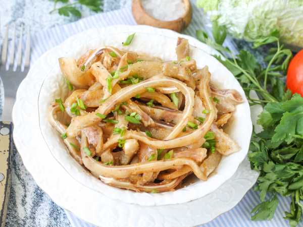 Сразу после варки хорошо промываем осьминога холодной водой, он должен остыть. Ароматический букет выбрасываем.