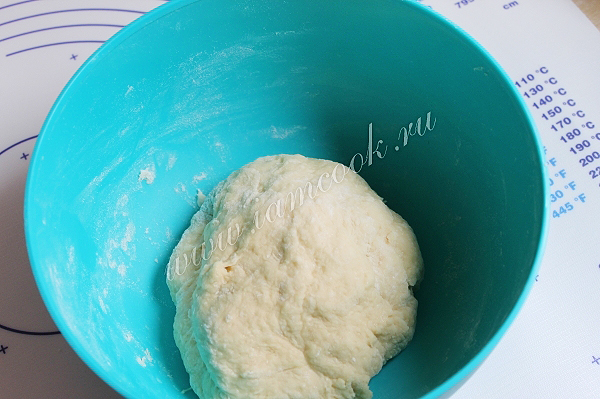 Замесим тесто (все продукты для теста должны быть теплыми). Кладем его в чашку для расстойки, накрываем полотенцем.