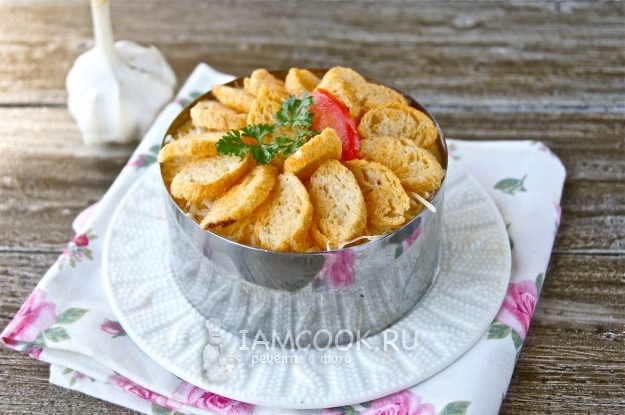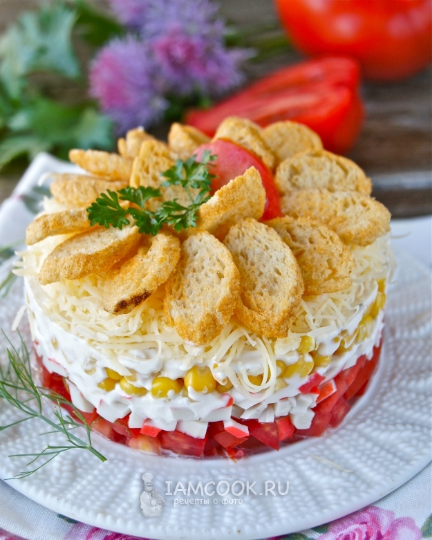 Многие не любят крабовые палочки, так это не проблема, просто замените их на любую рыбу без мелких косточек или даже на мясо. Сухарики можно взять как пшеничные, так и ржаные, это уже дело вкуса.