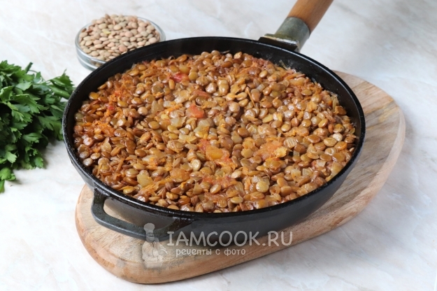 Предлагаю приготовить очень вкусный гарнир из зелёной чечевицы с добавлением овощей. В отличие от других видов, такая чечевица не разваривается и сохраняет свою первоначальную форму, только немного увеличивается в размерах, поэтому очень эстетично и аппетитно выглядит на тарелке. Она богата белком, железом и клетчаткой. Отлично подходит для вегетарианского, постного и пп меню.