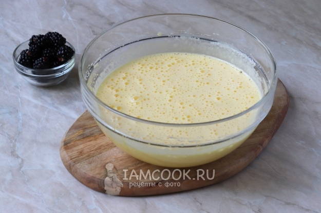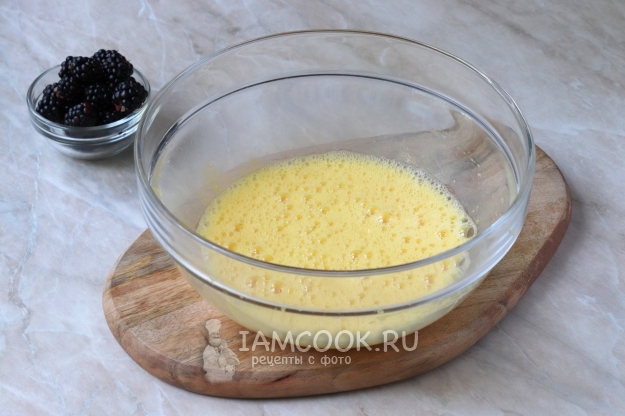 Для приготовления шарлотки с ежевикой подготовьте продукты по списку к рецепту и сразу же включите разогреваться духовку, выставив температуру на 180 градусов.