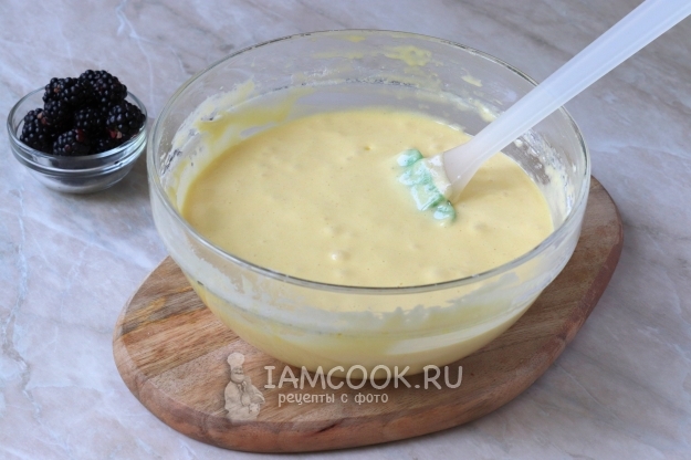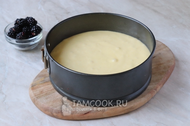 Поверх теста в хаотичном порядке разместите ягоды ежевики, не забыв предварительно их помыть.