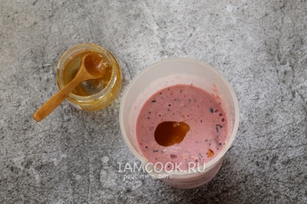 Смешиваем окрашенную ягодным соком овсянку с медом — по вкусу.