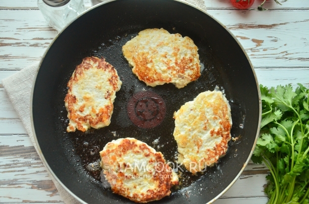 Лопаткой переверните румяные котлеты на другую сторону и жарьте еще минуты 3-4.
