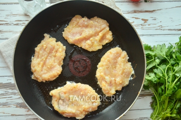 На сковороду налейте немного рафинированного масла и разогрейте его. Ложкой выкладывайте небольшие порции фарша, придавая им аккуратную форму. Жарьте на слабом огне минуты 4-5.