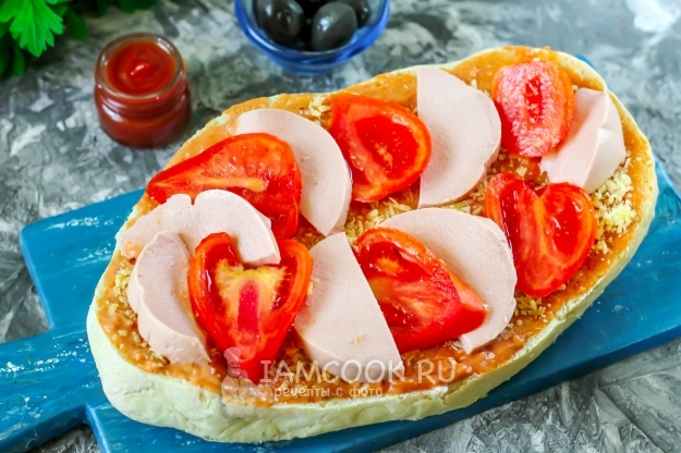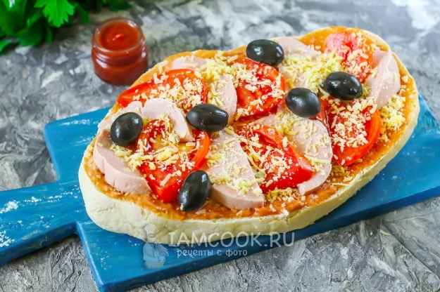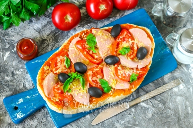 При подаче разрежьте пиццу-батон на порции. Приятного вам!