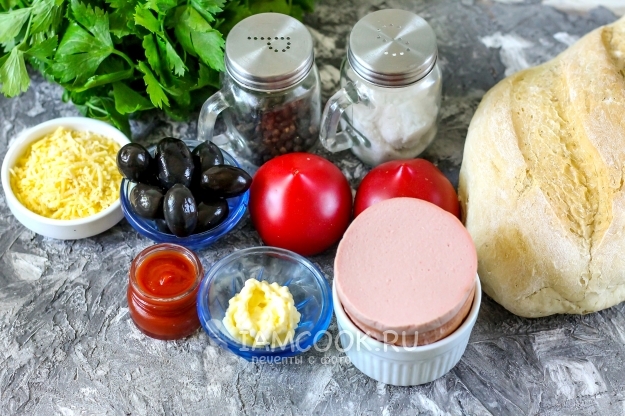 Итак, подготовьте необходимые ингредиенты для приготовления мини-пиццы из батона в микроволновке и начнем кулинарить!