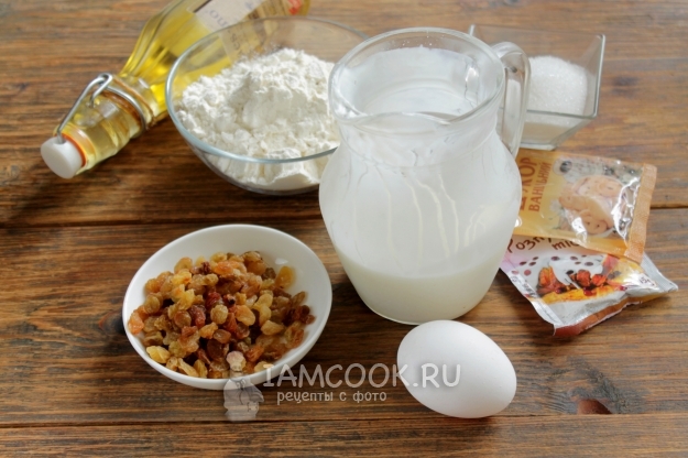 Чтобы испечь вафли с изюмом в вафельнице, возьмите продукты по списку. Подходит не только изюм, но и любые сухофрукты/вяленые ягоды.