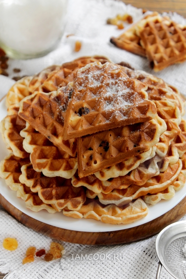 Подаем вафли с изюмом к завтракам, полдникам, перекусам.