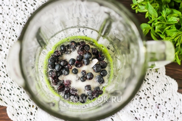 Чернику промойте в воде, оборвите стебельки и листочки, высыпьте ягоды в чашу блендера. Добавьте туда же сахарный песок, по желанию заменив его цветочным медом.
