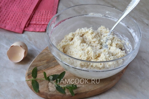 Тесто должно получиться достаточно густым и липким. Накроем миску крышкой или затянем пищевой плёнкой и отправим на 15 минут в холодильник.