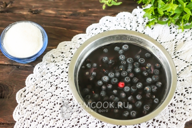 Чернику всыпьте в глубокую емкость, залейте холодной водой и промойте, воду слейте.