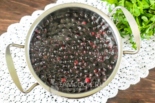 Залейте ягоды теплой водой и поместите кастрюлю на плиту.