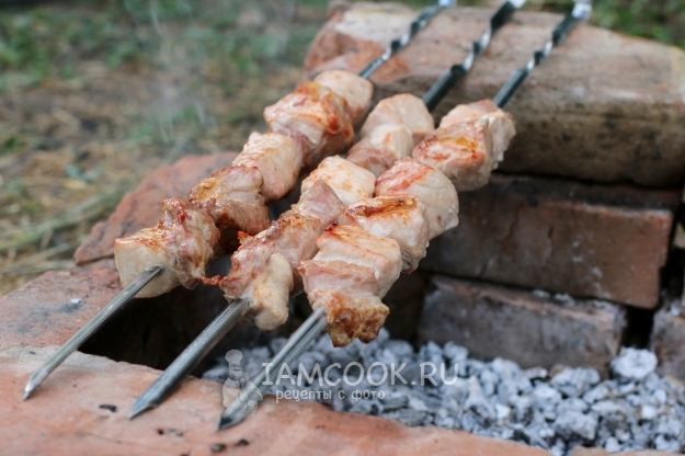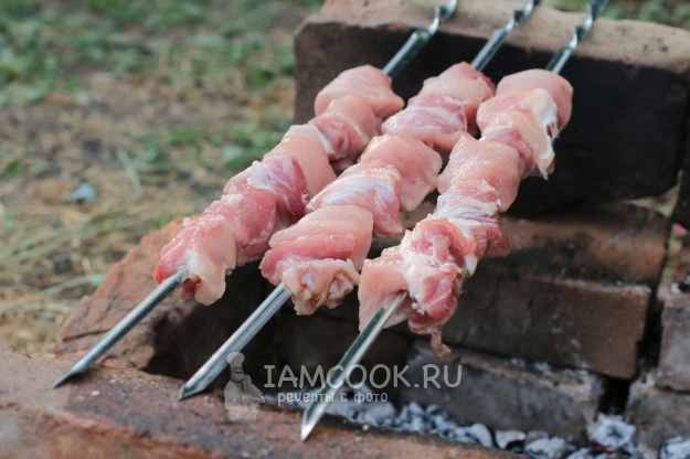 В процессе жарки будем периодически поворачивать шампуры, чтобы мясо равномерно прожаривалось со всех сторон. Следим, чтобы угли тлели и не появлялся огонь, в этом случае шашлык не будет гореть.