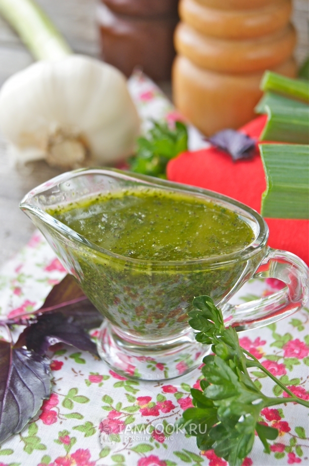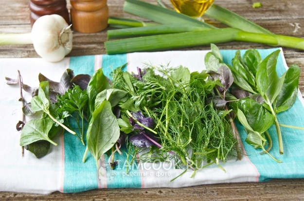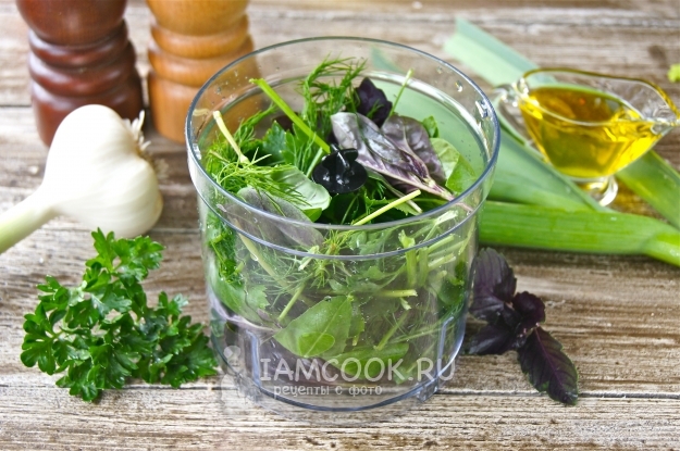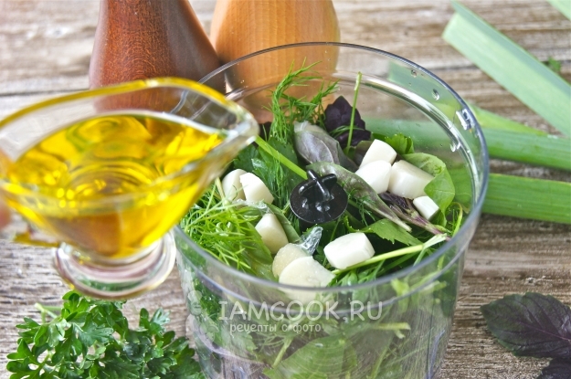 Подготовила все необходимые продукты для приготовления соуса из зелени.