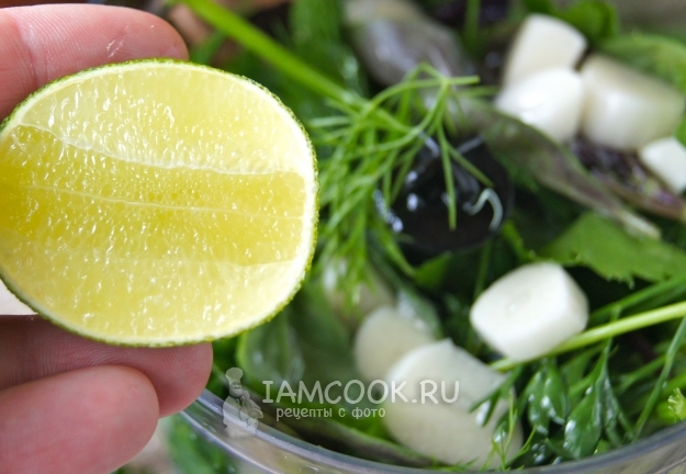 Удалила плотные стебли, а листики выложила в чашу блендера.