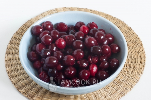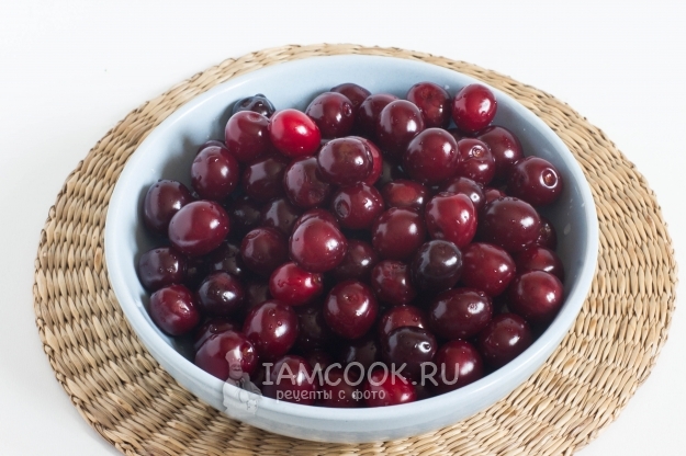 Вишню переберите, удалите «хвостики» и тщательно промойте.