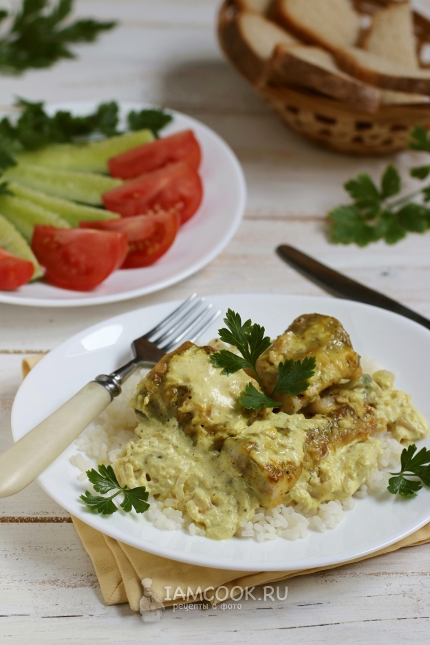 Навагу в сметане подаем сразу горячей с любым гарниром по вашему вкусу. Я отварила рис.