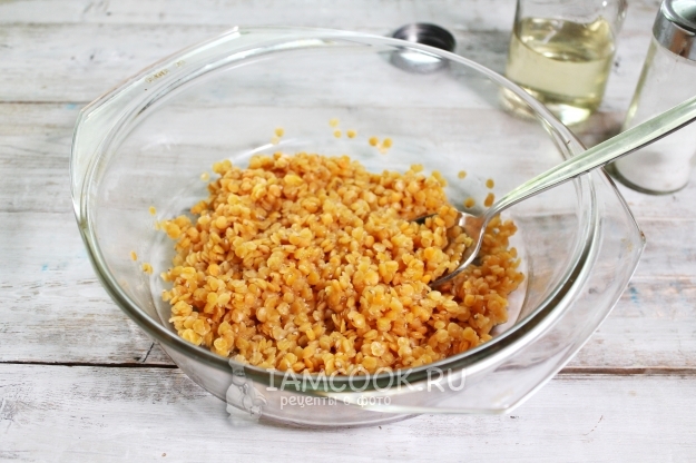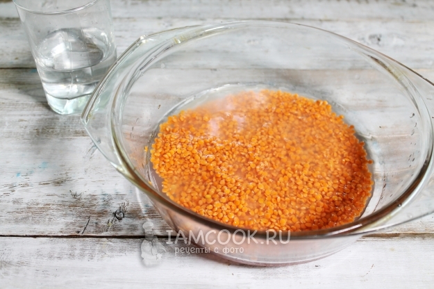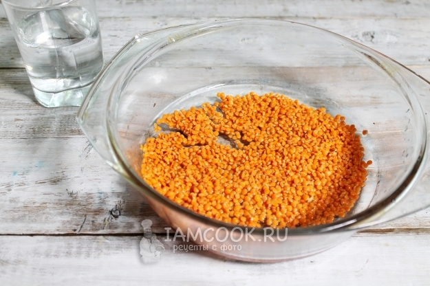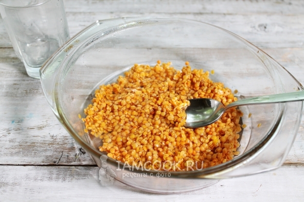 Красную чечевицу, готовую к употреблению, не нужно промывать, ее сразу поместите в емкость для микроволновки.