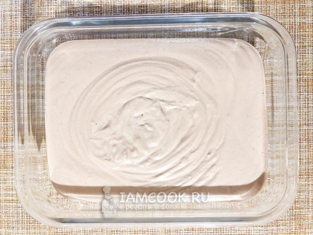 Выложите в форму и закройте крышкой или пищевой пленкой. Положите в морозилку минимум на 8-10 часов.