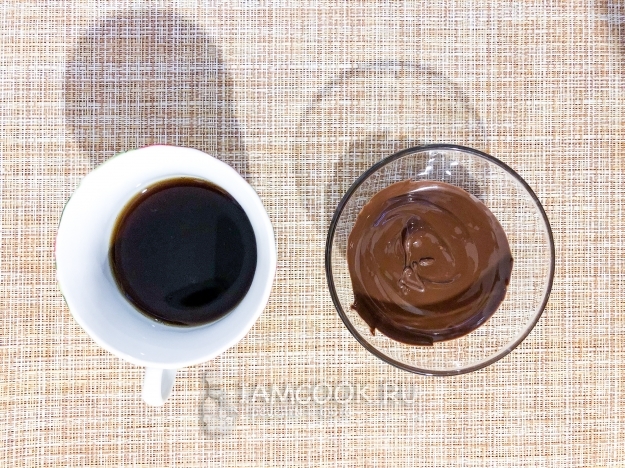 Шоколад растопите в микроволновой печи, а кофе растворите в горячей воде.