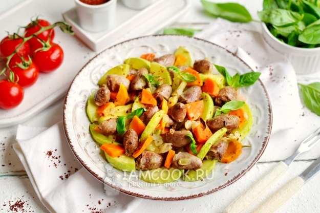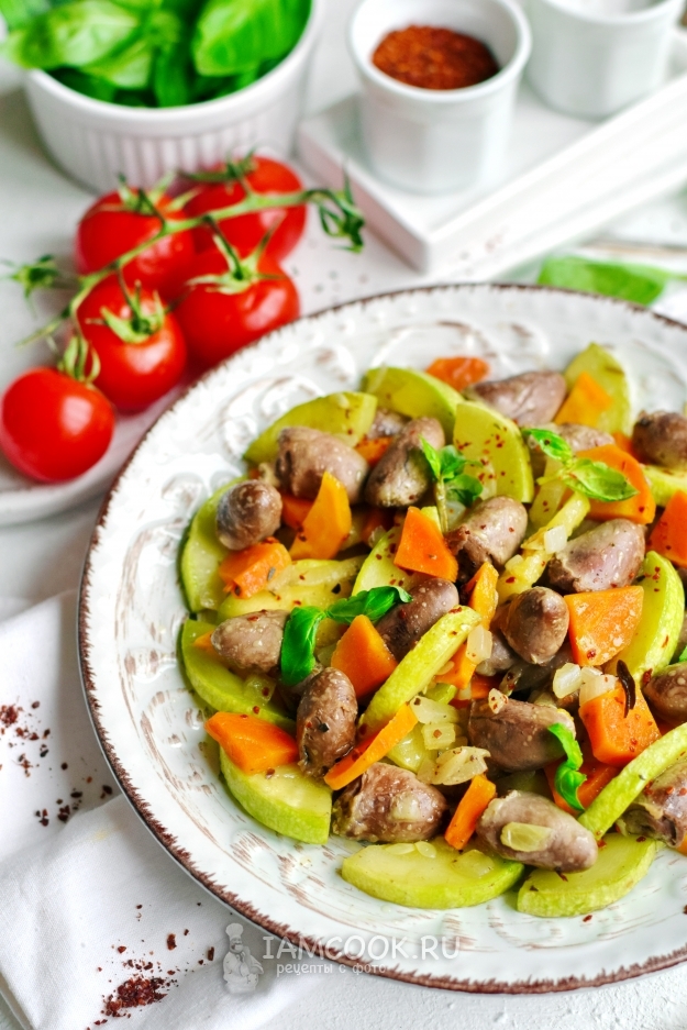 Куриные сердечки с кабачками готовы. Приятного аппетита!