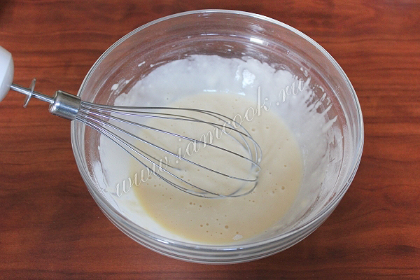 Влейте струйкой при помешивании ледяную воду или пиво.
