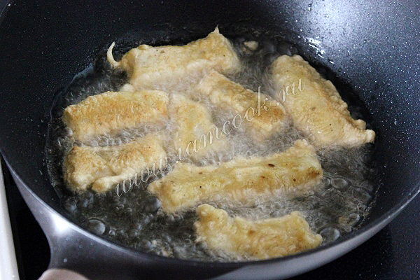 Готовые куски рыбы сначала выкладывайте на бумажные салфетки для удаления лишнего масла.