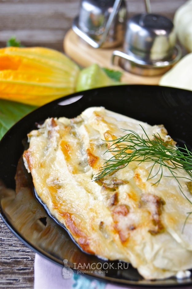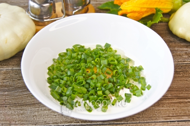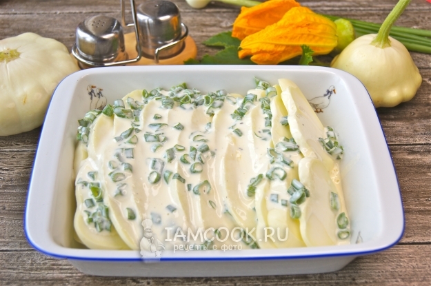Залейте яично-сметанной смесью патиссоны.