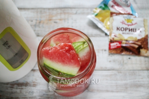 Арбузные кусочки не нужно трамбовать, но укладывать - как можно плотнее, заполняя пустоты.