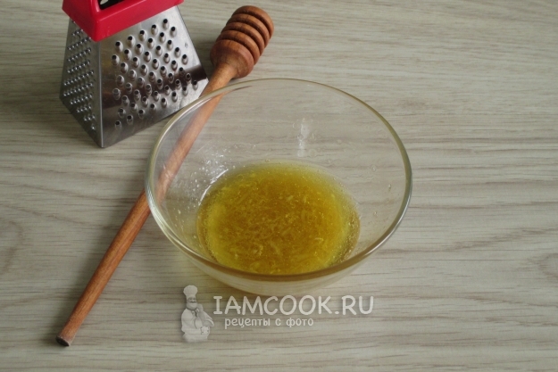 Для заправки соедините и слегка взбейте просто вилочкой оливковое масло, фруктовый (яблочный или другой) уксус, жидкий/(расплавленный) мёд и измельченный чеснок.