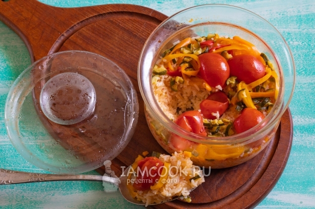 В общем, всем, кого судьба забросила в такое место, где нет плиты, но есть микроволновка, рис с овощами в микроволновке горячо рекомендую - получите абсолютно полноценное блюдо, как дома! Ещё я могу порекомендовать его тем, кто спасается от изнуряющей летней жары - микроволновка при приготовлении пищи меньше греет кухню, чем плита. А ещё это отличный постный рецепт для нестрогих дней - он полностью веганский.