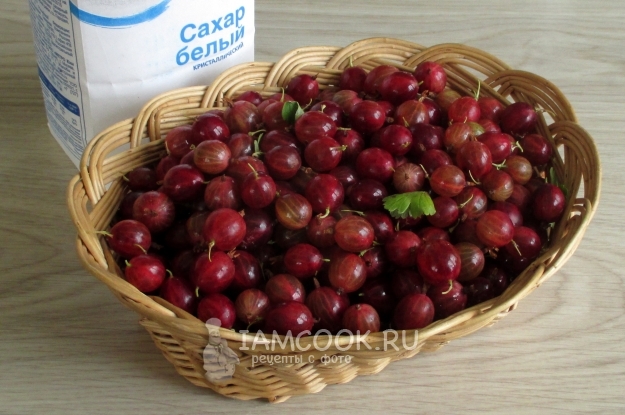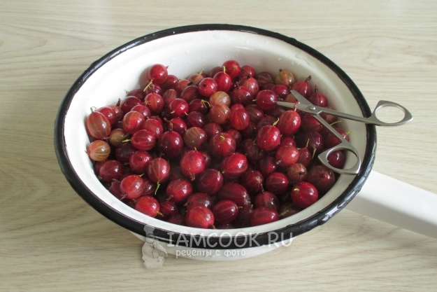 Подготовьте для джема ингредиенты: сахар, крыжовник, а также мясорубку и ножницы...