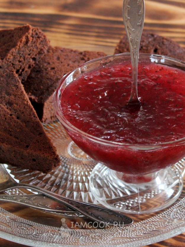 Сначала джем жидковатый, но после остывания существенно густеет, что и иллюстрирует это фото - ложка стоит! А ещё это фото намекает на рецепт брауни в мультиварке. Купила недавно много шоколада по акции и у меня брауни зачастили на завтрак... то такой вариант, то в микроволновке, то обычным способом - в духовке с самыми разными начинками (много отличных проверенных рецептов есть на сайте в подборке брауни!)