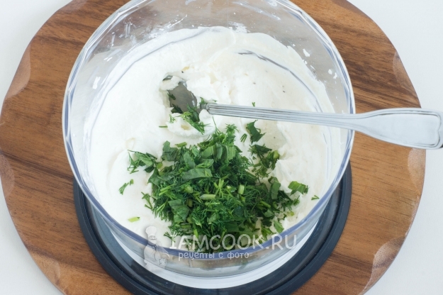 Остается только перемешать и все! Соус-дип из феты с йогуртом и зеленью готов!