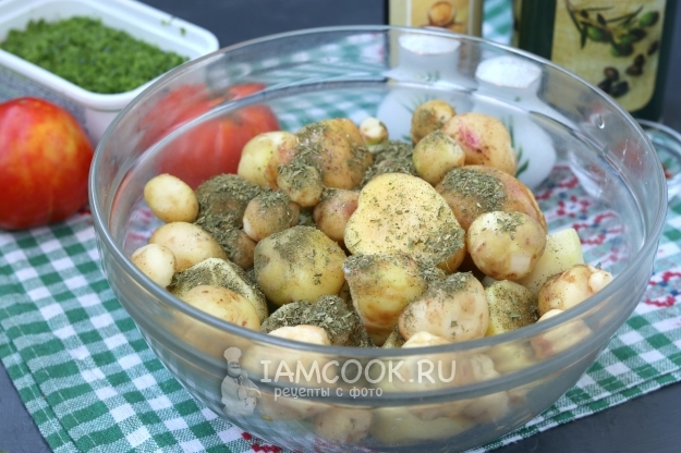 Картошку почистить и сложить в миску, посыпать прованскими травами.