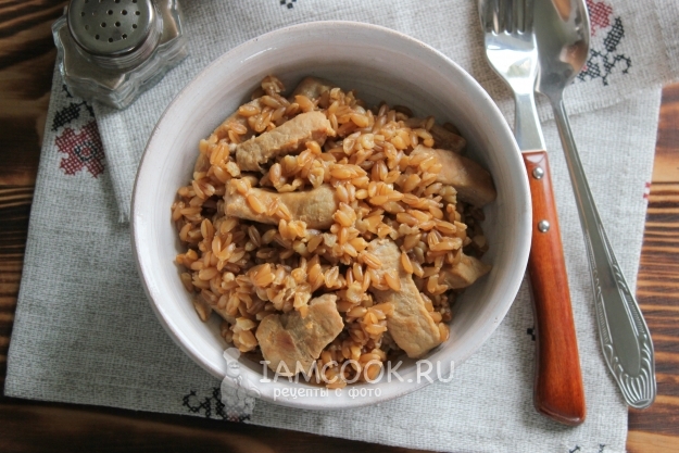 По желанию можно добавить в эту полбяную кашу с мясом сливочное масло.