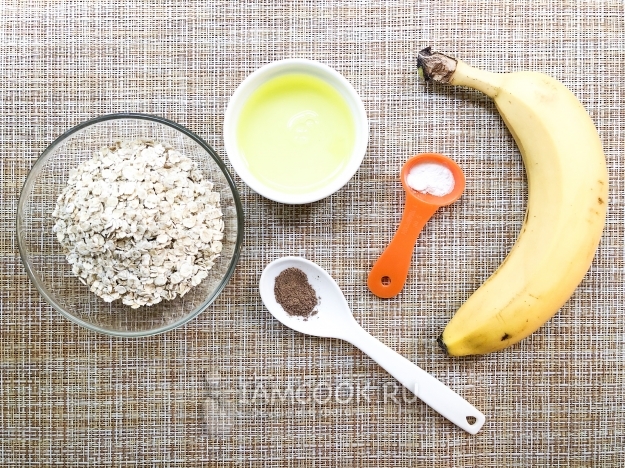 Для приготовления бананово-овсяного кекса в кружке в микроволновке возьмите ингредиенты по списку.