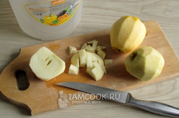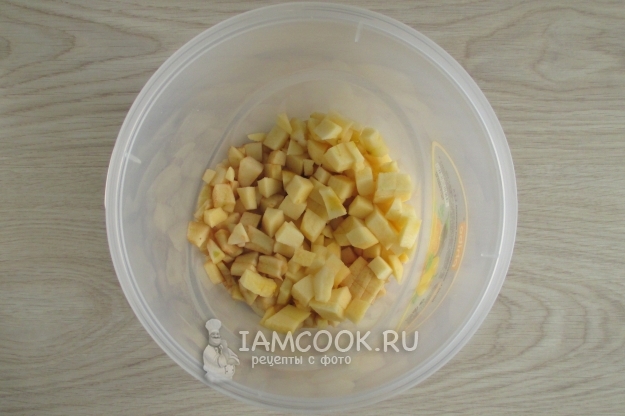 Яблоки (с кожурой или без) нарежьте небольшим кубиком.