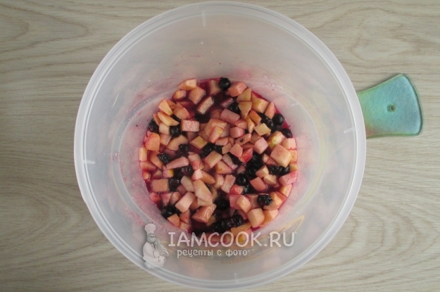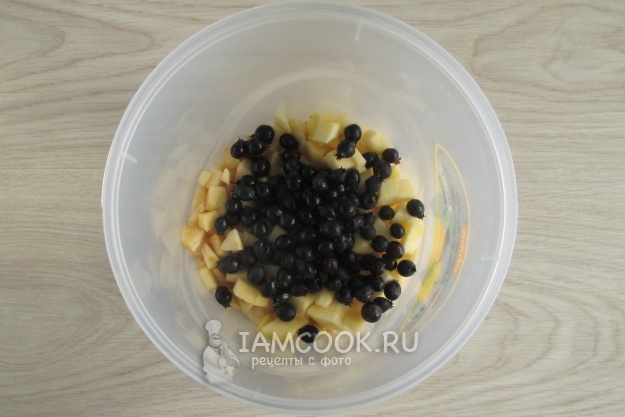 Добавьте к яблокам перебранную и промытую иргу.