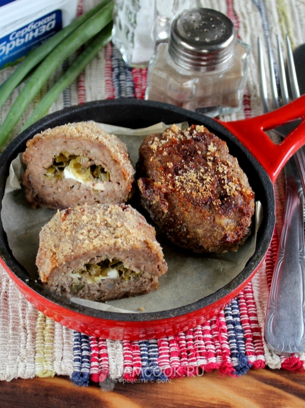 Мясные зразы с сыром брынза и зеленым луком готовят в духовке, на сковороде или в мультиварке.