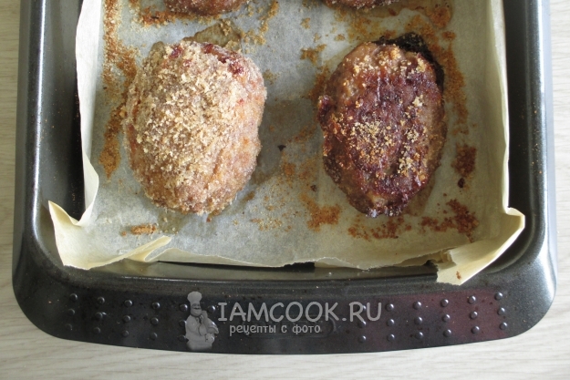 Оберните фаршем начинку и полученную заготовку обваляйте в панировке.