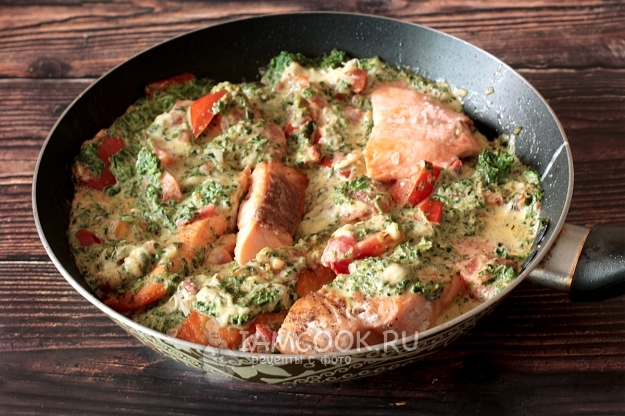 Я не очень люблю к такой благородной рыбе подавать сливочно-сырные соусы или готовить в них, но этот рецепт меня покорил сразу же, здесь же есть мои любимые томаты)))). Поверьте на слово - сочетание изумительное, аромат потрясающий. Надо готовить!