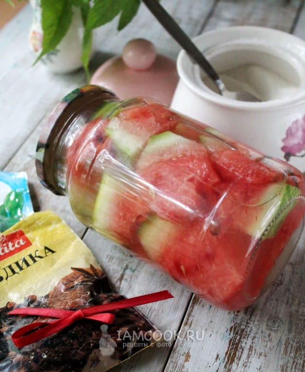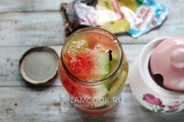 Конечно, можно маринованный арбуз сделать и острым, и пряным, добавив перец, чеснок и использовать как закуску. Но данный рецепт - не про это.